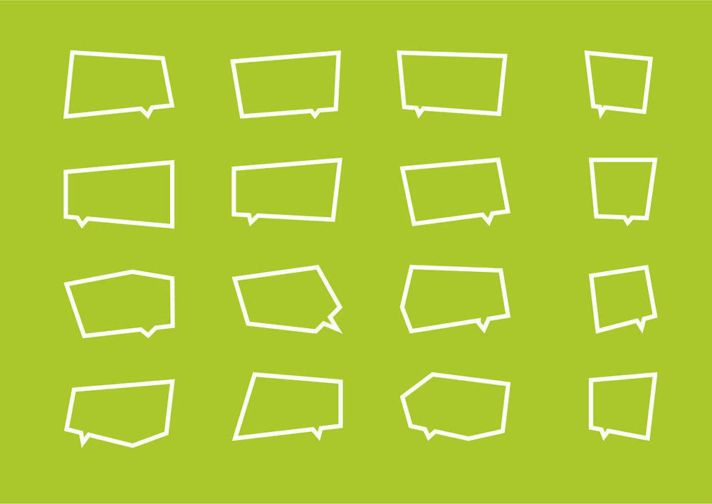 ▼以不同對話框及點線來作輔助圖形,象徵對話。